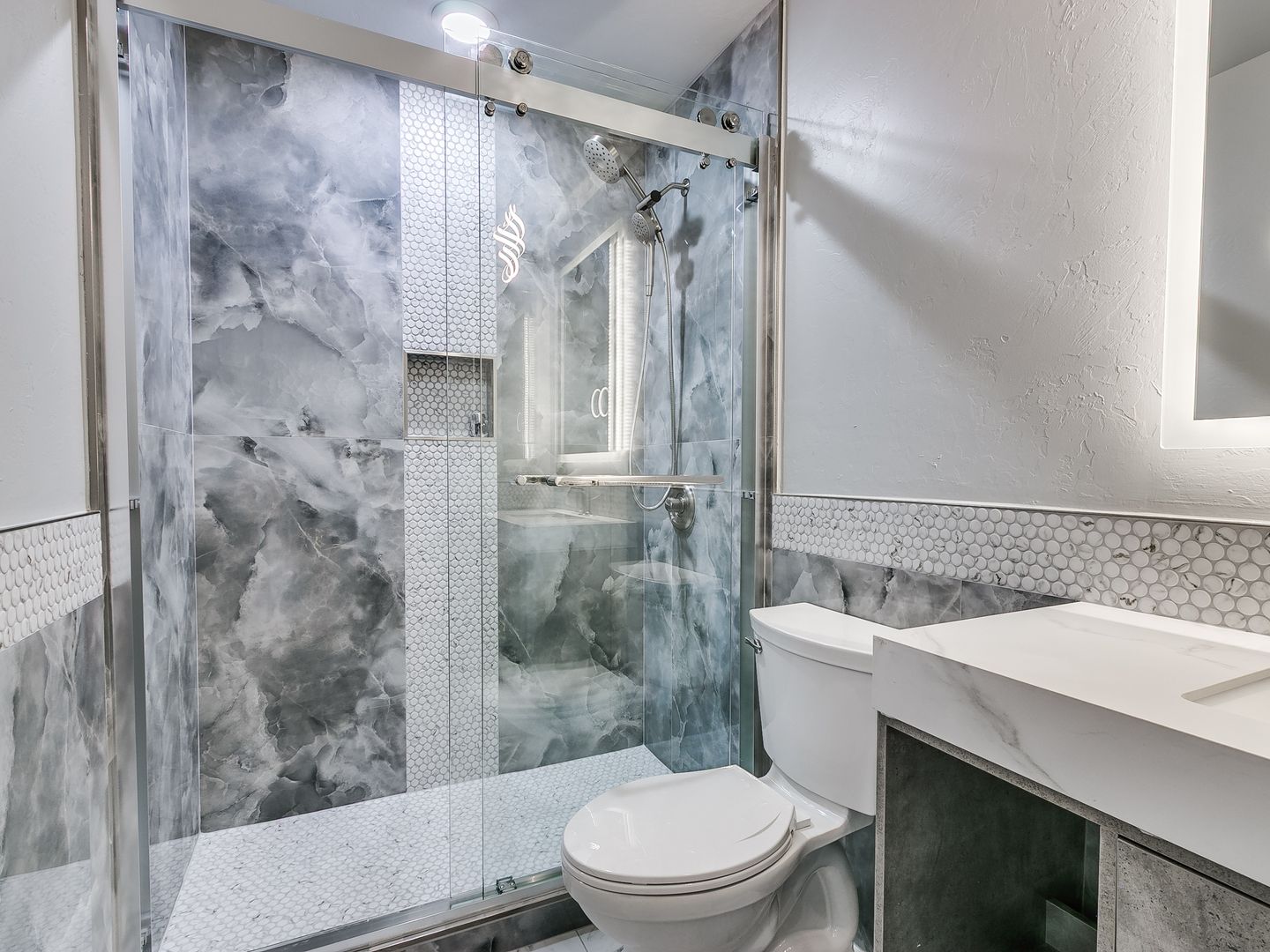 2 Story Condo in the Gated Community of Grand Pointe Condos. 3 bedrooms, 3 full baths, 1 living, 1 dining, 1 study/game room upstairs, 2 car garage, 1,760 sq. ft. (est.), built in 2025. Living has a tall ceiling, a fireplace with built-ins on each side and ceiling fan. Totally remodeled through-out. Kitchen with new cabinets, granite counter tops and comes with stainless steel appliances (dishwasher, disposal, microwave, gas range and refrigerator). Utility closet with storage and with washer/dryer included. Beautiful tiled floors through-out. The master suite has a private bath and walk-in closet with built-in drawers and shelves. Covered patio and upstairs balcony. Lawn Care is provided by the HOA. Water/Trash/Sewer paid. Community pool and tennis court. Putnam City North Schools.