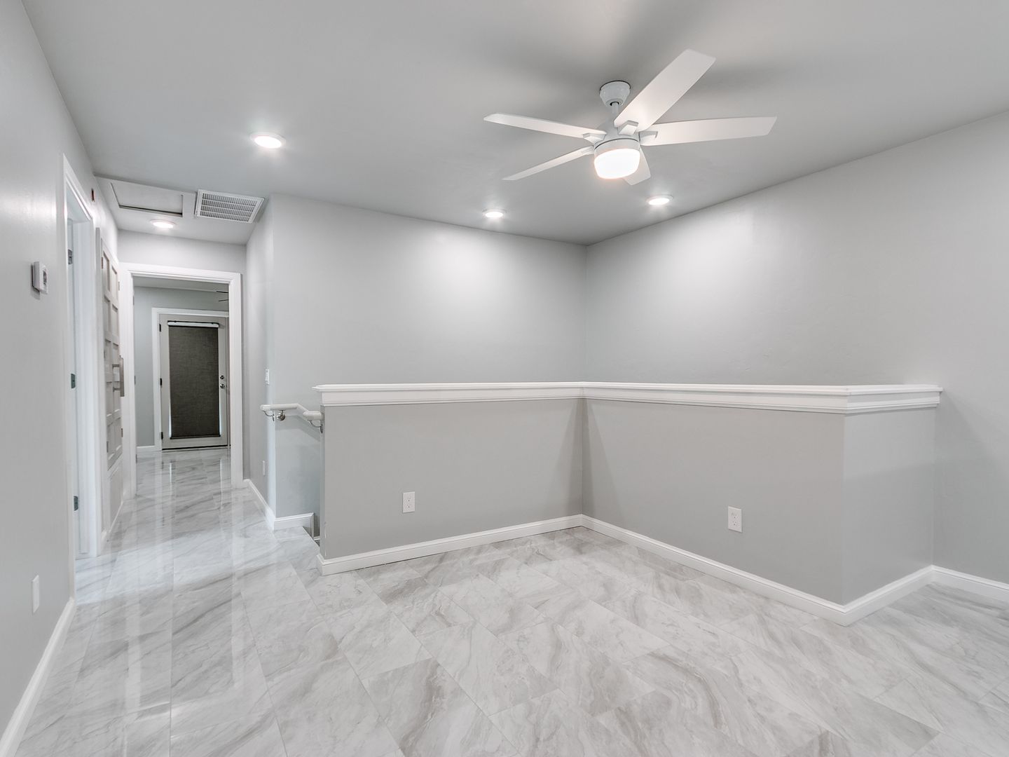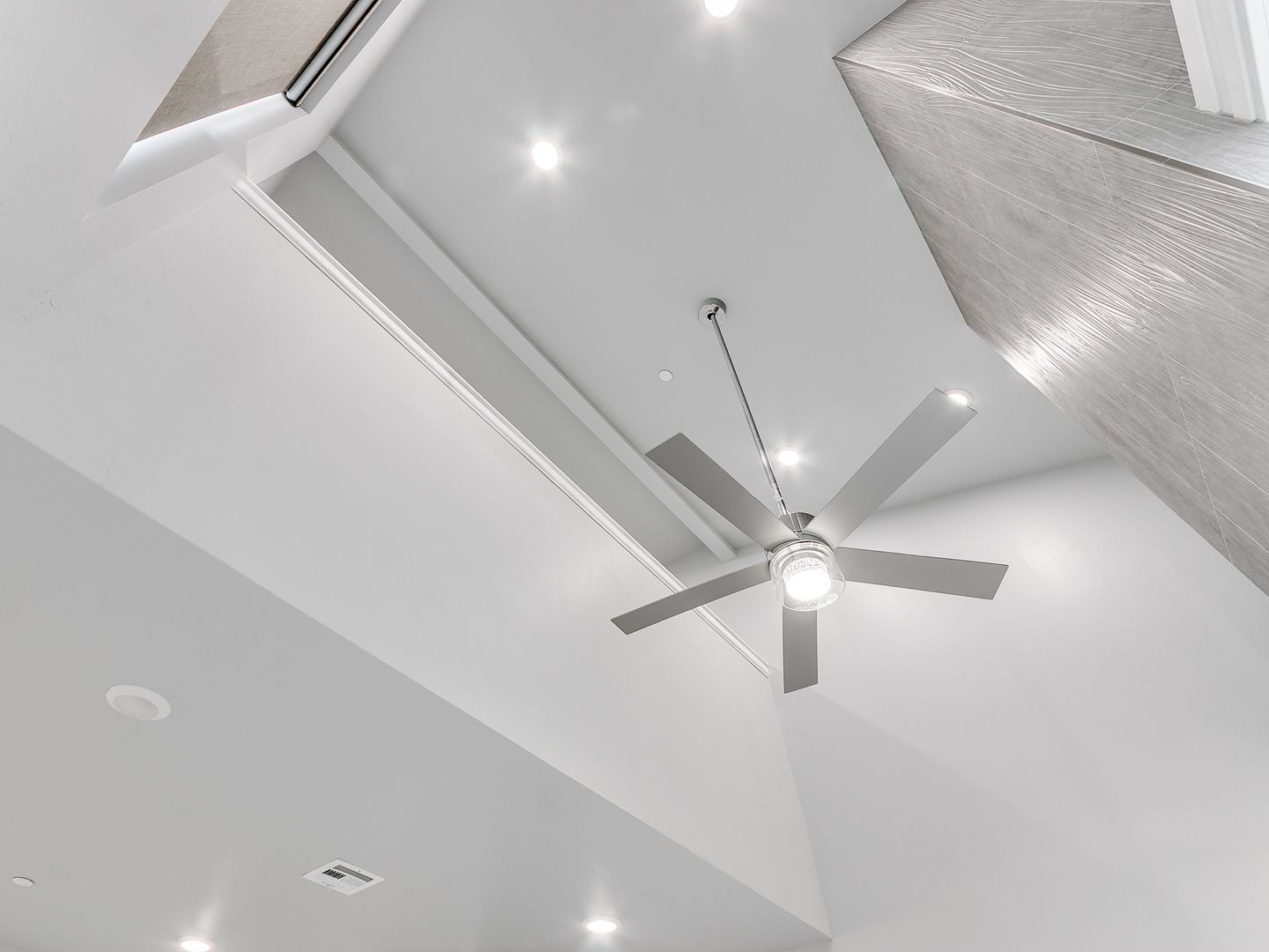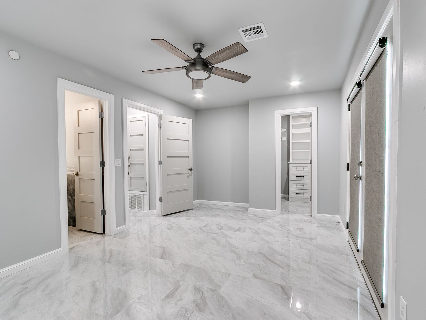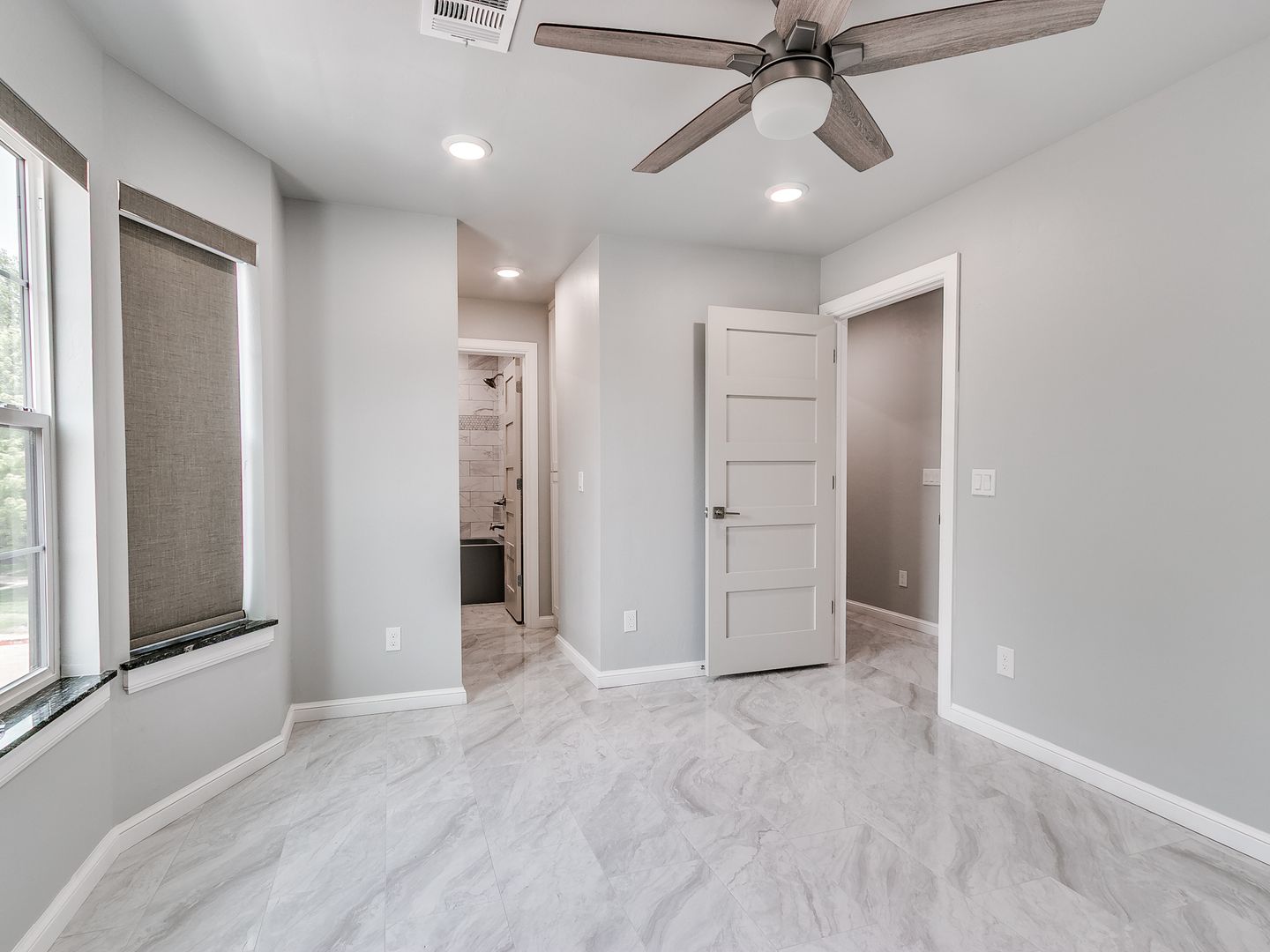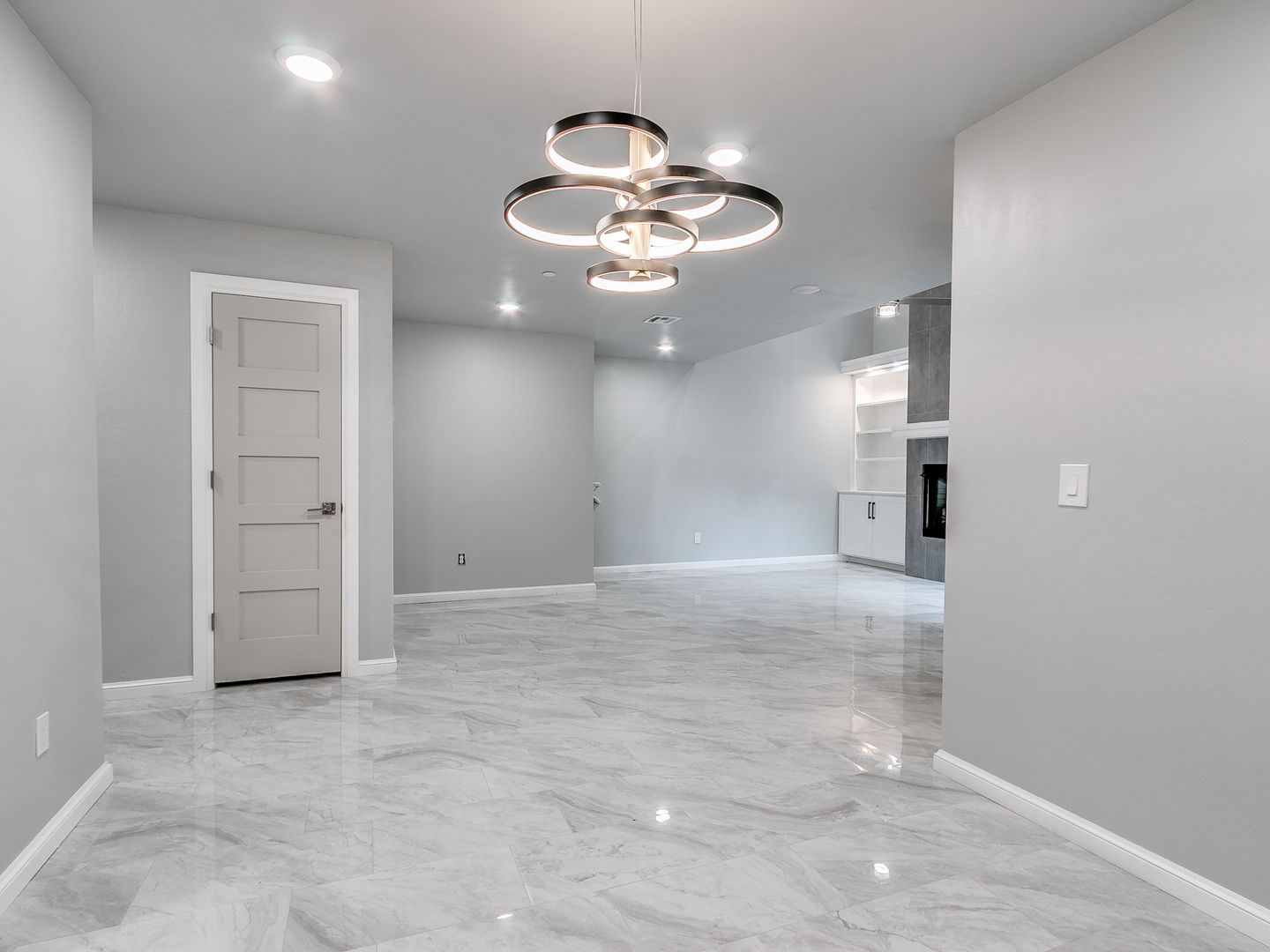 Interior: Ceiling fans, tiled floors, fireplace, built-ins, granite counters